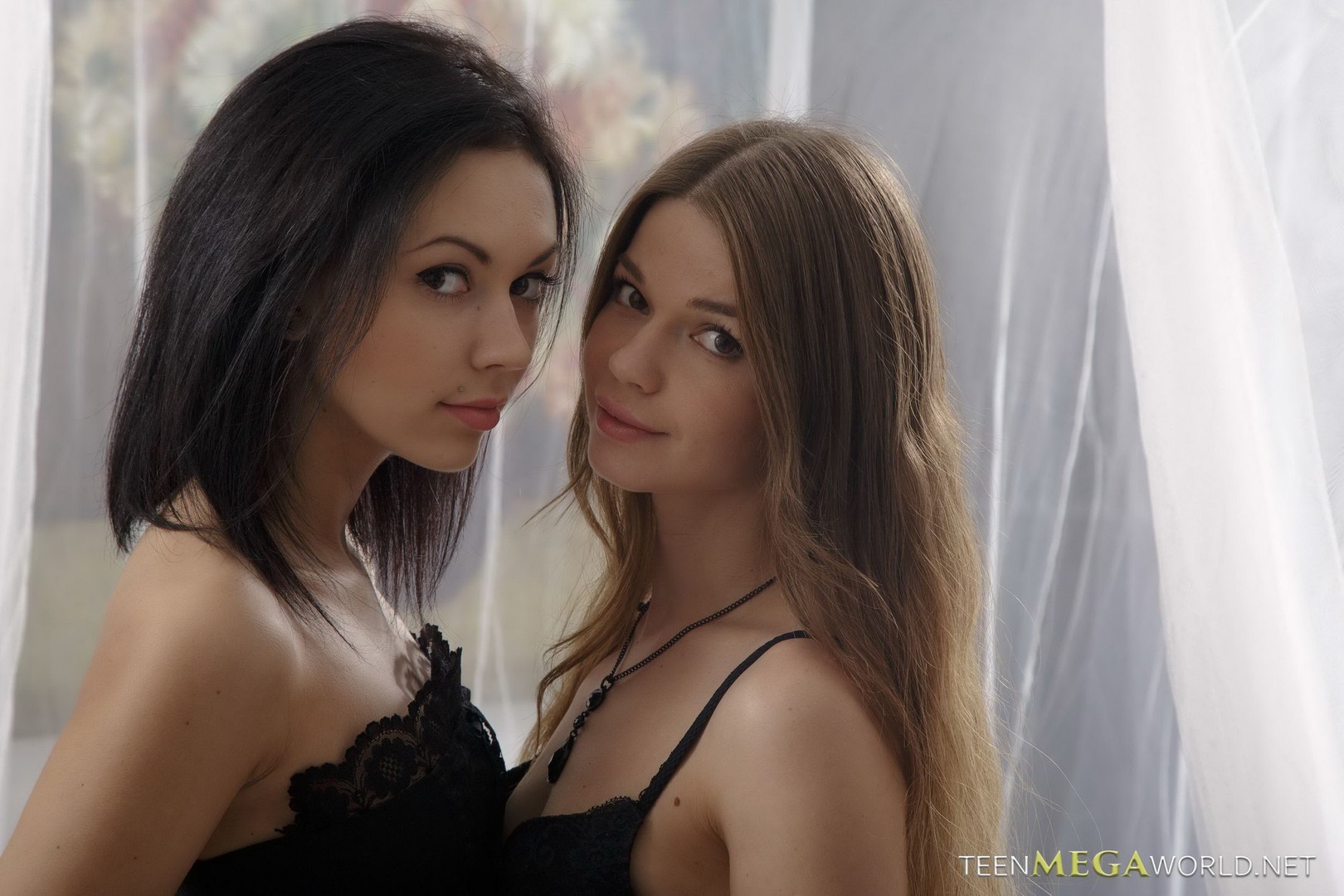 Sheri Vi and Jacqueline in Beauty Angels set Black Lingerie Lesbians